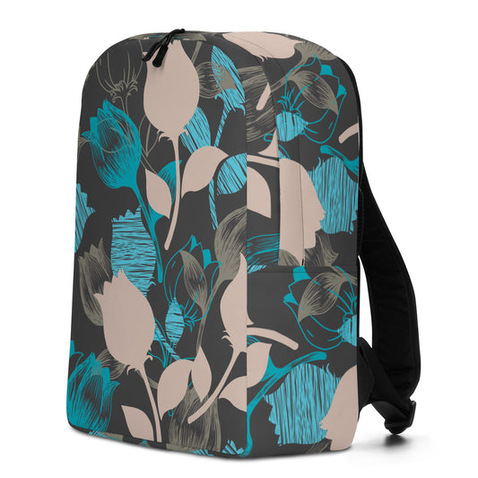 Modern Floral Backpack – Teal & Beige Tulip Pattern on Charcoal