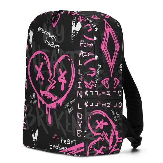 Broken Heart Graffiti Backpack – Pink & Black Urban Streetwear