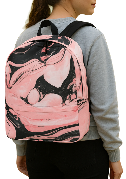 Pink Marble Swirl Backpack – Modern Minimalist, Water-Resistant, Laptop-Ready