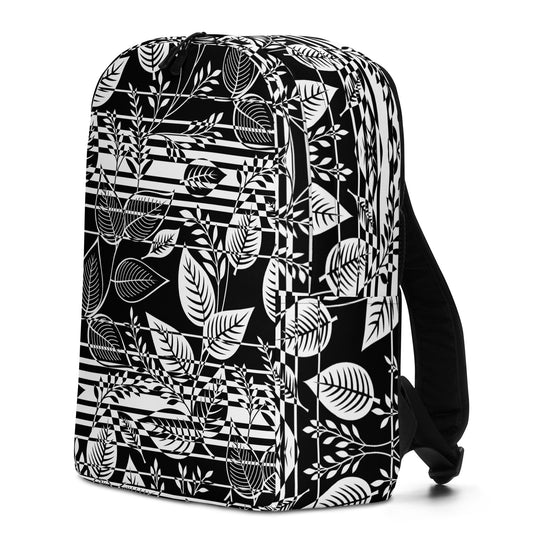 Black & White Botanical Stripe Backpack – Modern Nature-Inspired School & Travel Bag