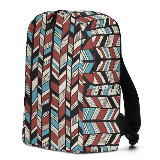 Retro Chevron Arrows Backpack – Red, Blue & Neutral Geometric Pattern